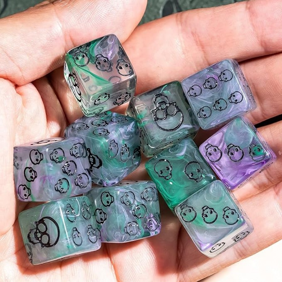 Purple and Green Sculls D6 Dice Cube