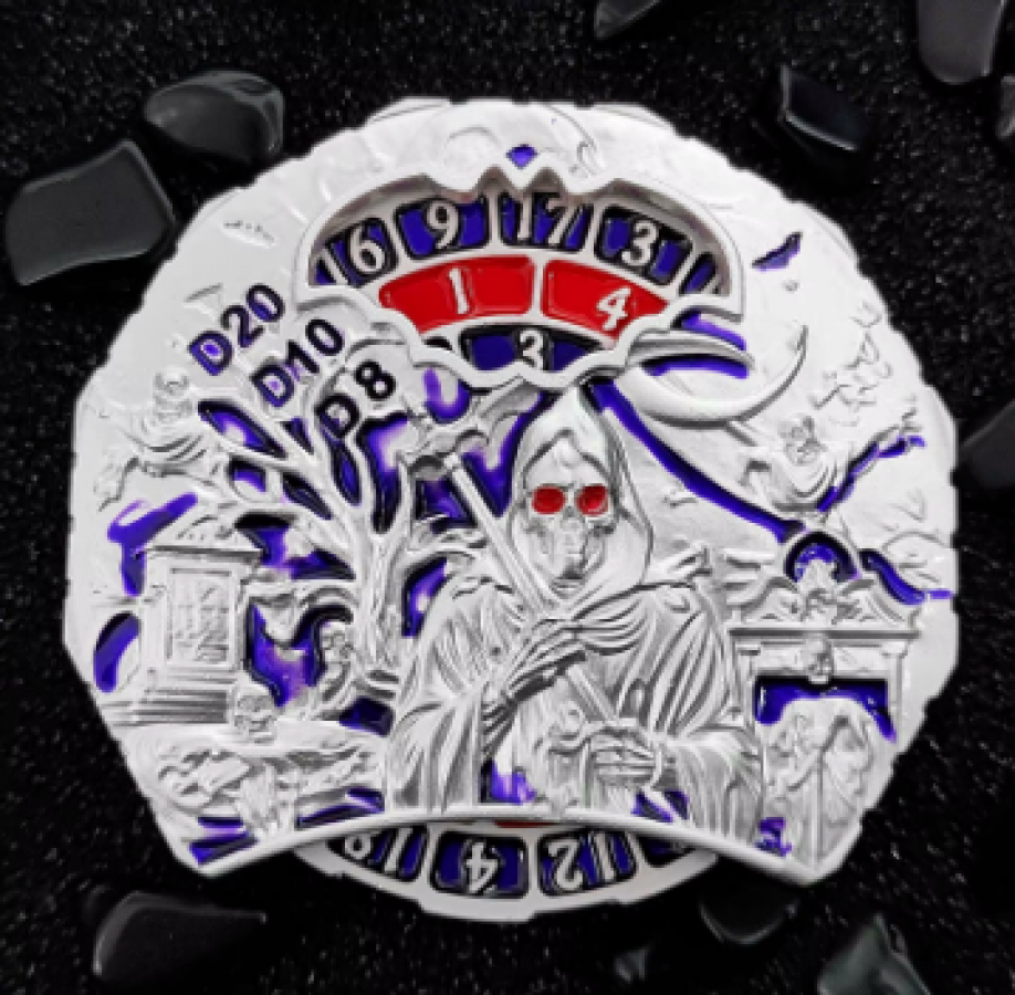 Blood, Nickel Blue, Nickel Red, Antique Gold, Sickle Blood, Sickle Gold, Sickle Nickel Blue, Grim Reaper Silver, Grim Reaper Blood, Dragon Bronze, Dragon Silver, Blue Space, Magic Hands Bronze, One Eye Bronze, Dragon Tail Silver, Three Dragons Bronze, Cthulu Bronze
