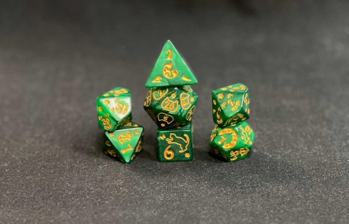 Cat-tastic RPG Dice Set (Green)
