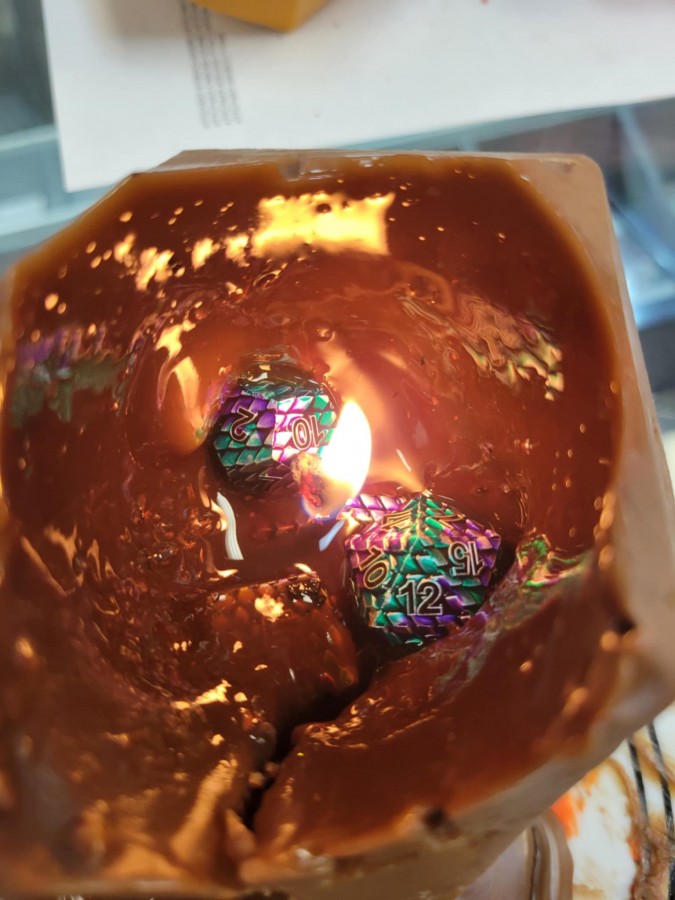 dice candle, Mystery Metal Dice Candle, Metal D20