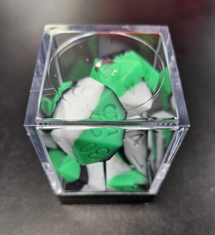 Silicone Rubber RPG Dice – Green & White & Black