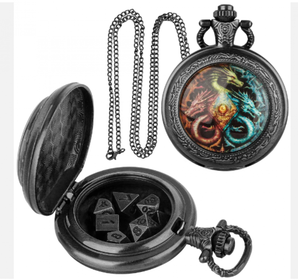 Vicious Dragon DND Pocket Watch with Mini Metal Dice Set
